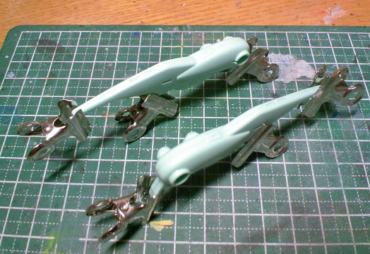 脚やらガンブラスター用ボディなんかは事前に加工やら接着をしておいて、今日はヤスリやペーパーをかけるだけでした。