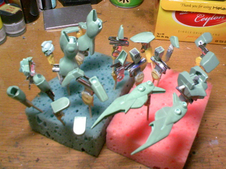 とりあえずガンブラスターも色を塗り始めたのですが、生憎の雨で今日は1、2層塗っただけみたいな感じで終わりです。