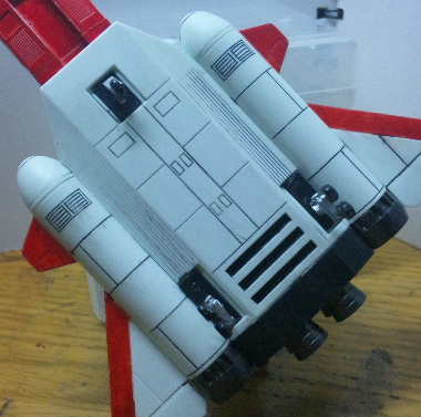 本体への加工は、ランディングギアの収納/展開を差し替えで再現した事と、機首のピンを短く削って後ハメ化したくらいです。ちなみにコアファイターのギアは固定してあります。どうせHGUCのやつが沢山余っていますし、偶にはディスプレイモデル(?)って言うのも良いかな~と思いまして・・・(笑)