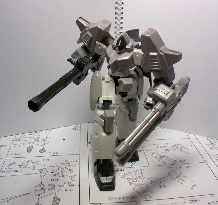武装はこのビームキャノンとダブルガトリングガンのみ。1/100にはあったバズーカと肩のミサイルポッドは再現されてません。もっと言えば設定上存在するマシンガンが無いのは・・・