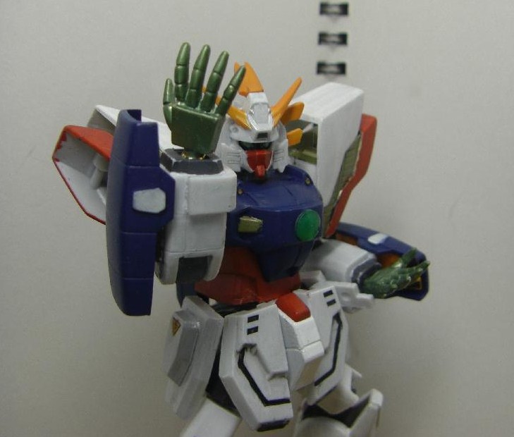 という事で、1/144シャイニングガンダムでした。ちなみにこの右手首はグレードアップパーツ付属のガンダムローズ用のフィンガーを使用してます。