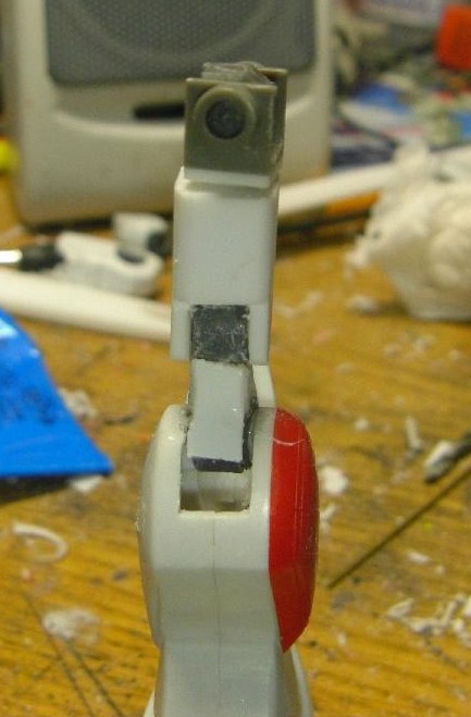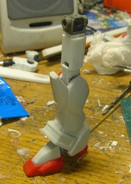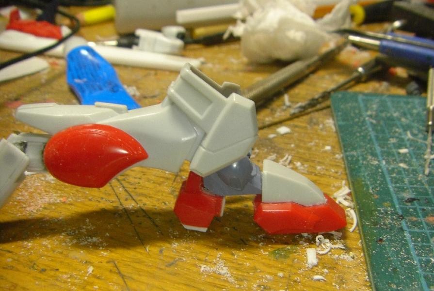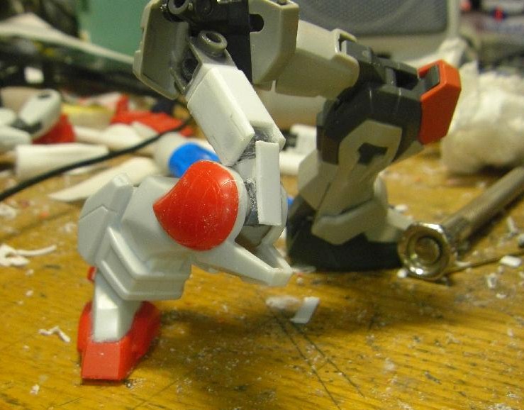太腿はストライクの物を流用するのが面倒だったので、プラ角棒とプラ板で作ったフレームにしこたまプラ板を貼って作った完全自作の腿を使用。ちょっと細い?