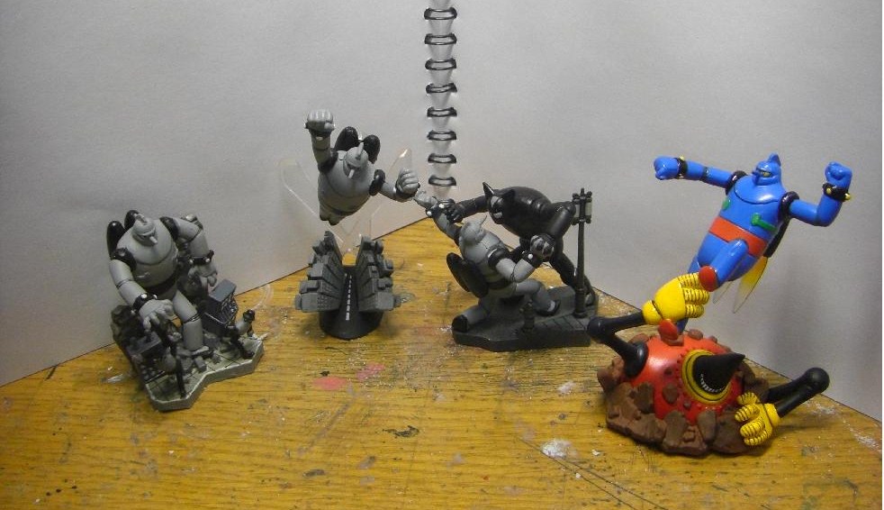 あと、今日学校の帰りにリサイクル屋で買ってきたタイムスリップグリコの鉄人28号シリーズ。どれもこれもカッコいい!特に右端のモンスター(台座になってるロボット)が素敵!
