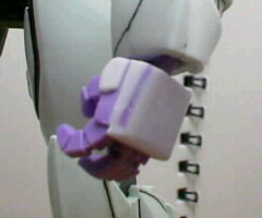 下の画像を見てくれたら分かるように、ホントに上からプラ板を貼って(事前に手甲のディテールを全て削り落としてあります)、ちょいと丸みを帯びる程度にヤスリで角を取っただけのお手軽改造です。他には、ボールジョイントの軸を3mm程短縮しているくらいかな・・・・・