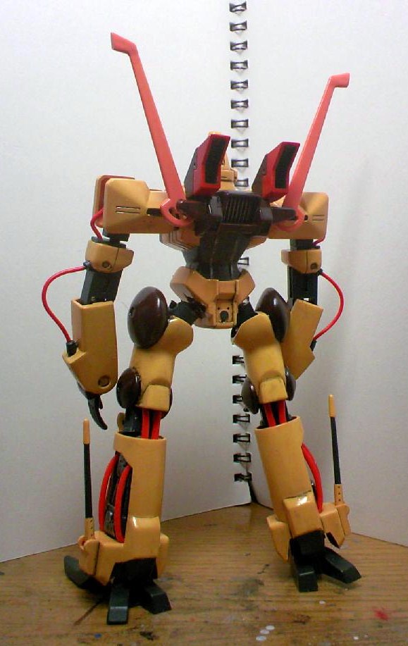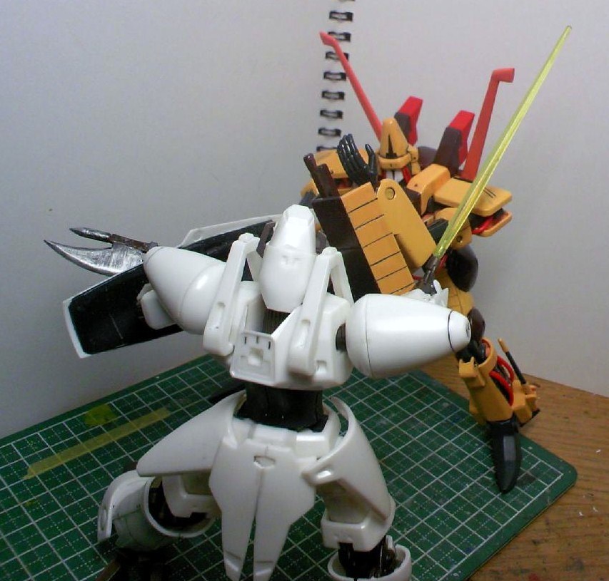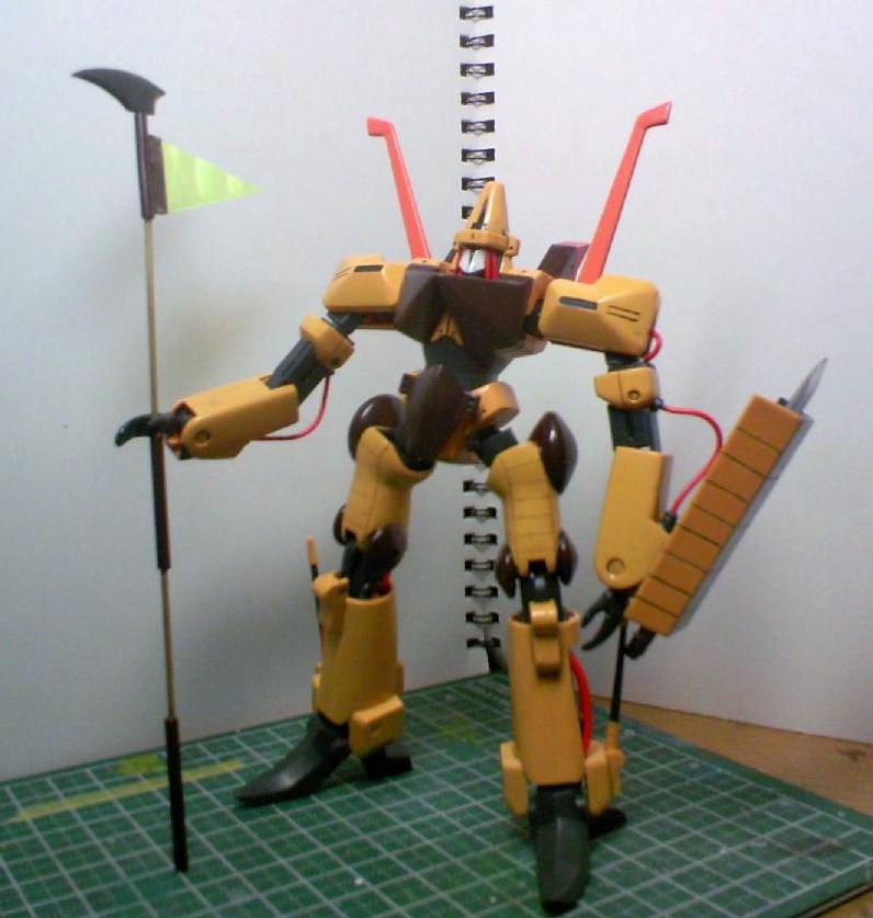 ファイブスター物語のモデル的に考えて、白と朱のミラージュ騎士団風なのも考えていましたが、その色にするのも逆に不釣り合いだと感じたので、色は一般機のものにしました。