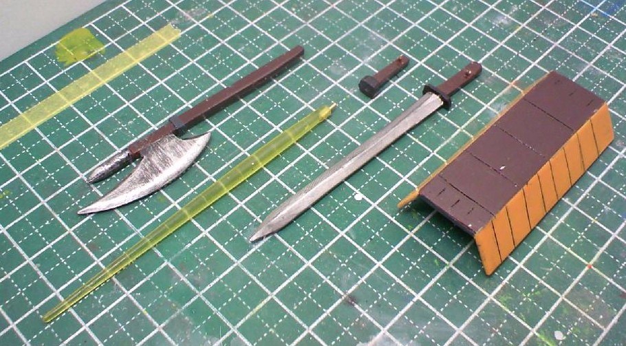 それと、オリジナルの武装として、盾、剣、斧を揃えてみました。