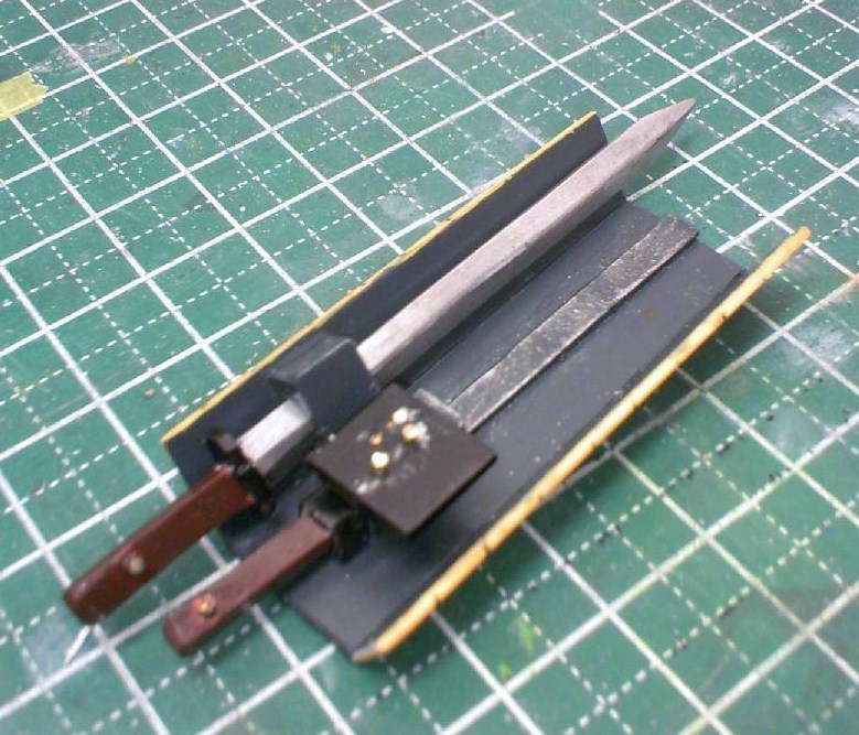 パワーランチャーはそのままでは取り外しが難しいため、後部をプラ棒で延長してそこに接続用の真鍮線を入れました。