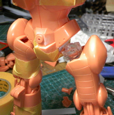 昨日の続きになりますが、股関節の受けは先端の接続ピンは元のパーツから切り出した物を加工して使用したので、そんや難しい事はしていません。