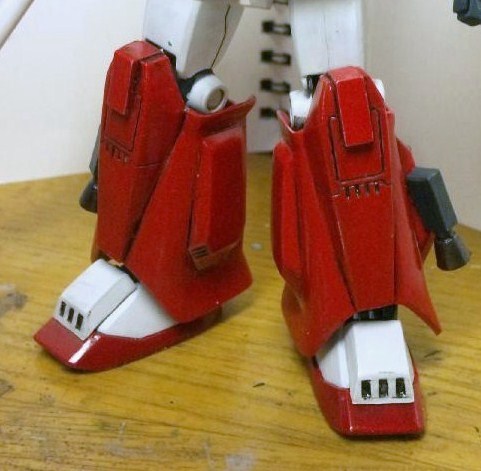 サイドのバーニアは基部をプラ板で作り直し、膝アーマーの上部はプラ板で延長した事以外で外観に手を加えた所は無いですね。そもそもの形が良いので、関節周り以外は特に何もしなくても良さげですね。