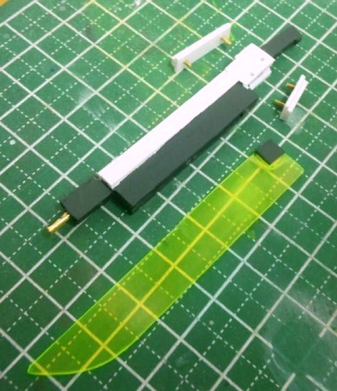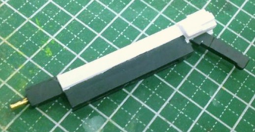 根元の少し出っ張ったパーツは真鍮線で取り外し式にしており、銃⇔鉈形態でグリップを確実に固定されるようになっています。