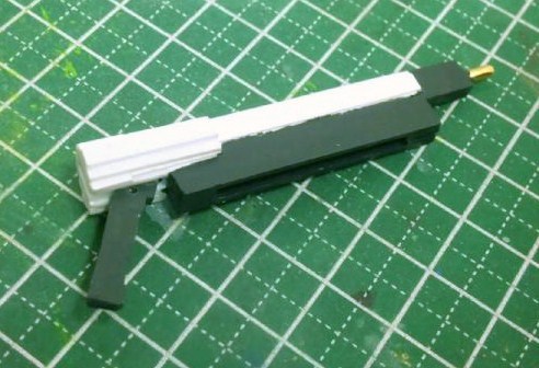 そして毎度恒例(?)の自作武装、今回はビームライフルのようなものを製作しました。