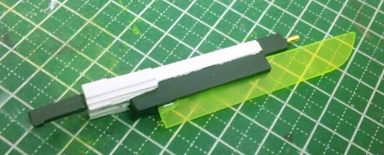 今回は変形ギミックを備えており、グリップを起こしてクリア下敷の刃を取り付けると・・・
