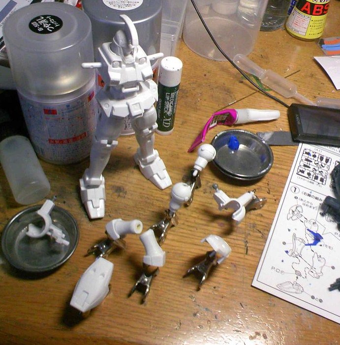 先日買ってきた下地塗料(サーフェイサー)を早速活用してみましたが、元が白いキットな上に塗料も白なので、殆ど変化が見られなくて残念至極。