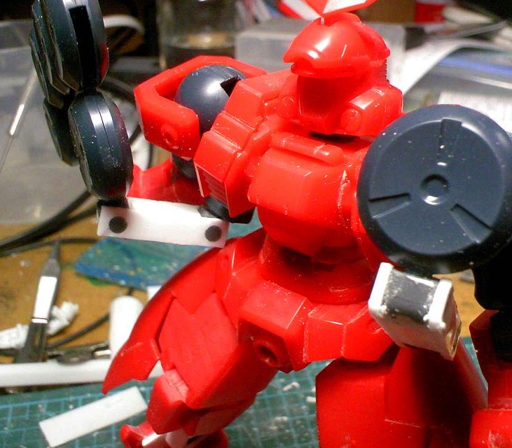 メリクリウスはプラネイトディフェンサーのアームをプラ棒とプラ板で新造。シッカリと固定できるようになりました。