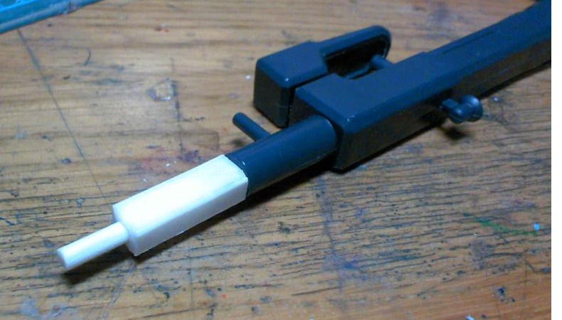 砲身の後ろ側に角棒と丸棒で作った即席の延長ユニットを装着。ちょいと長めに寸法を取ってあります。
