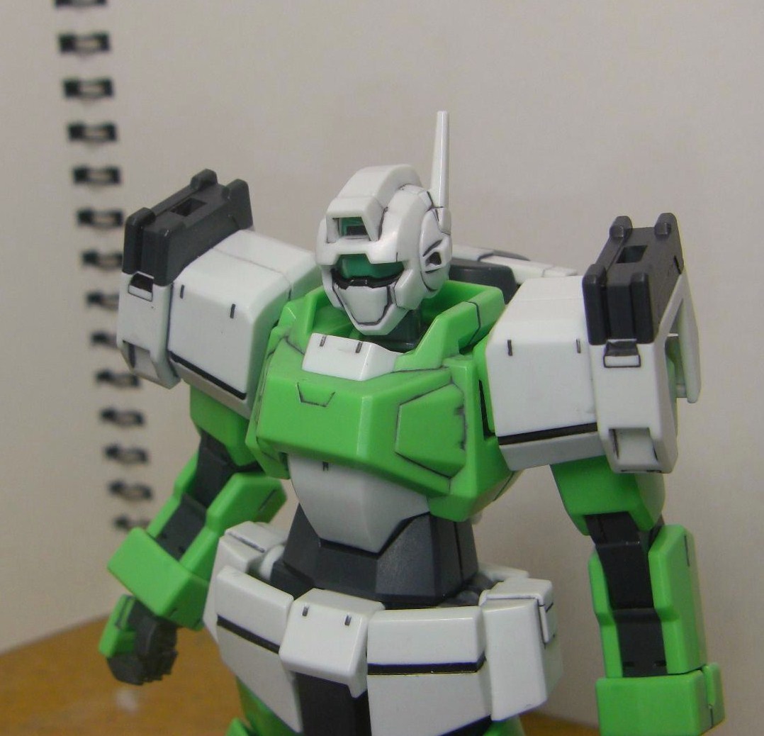 ジム顔の頭部。バイザーがクリア成型じゃなかったのが多少残念でした。