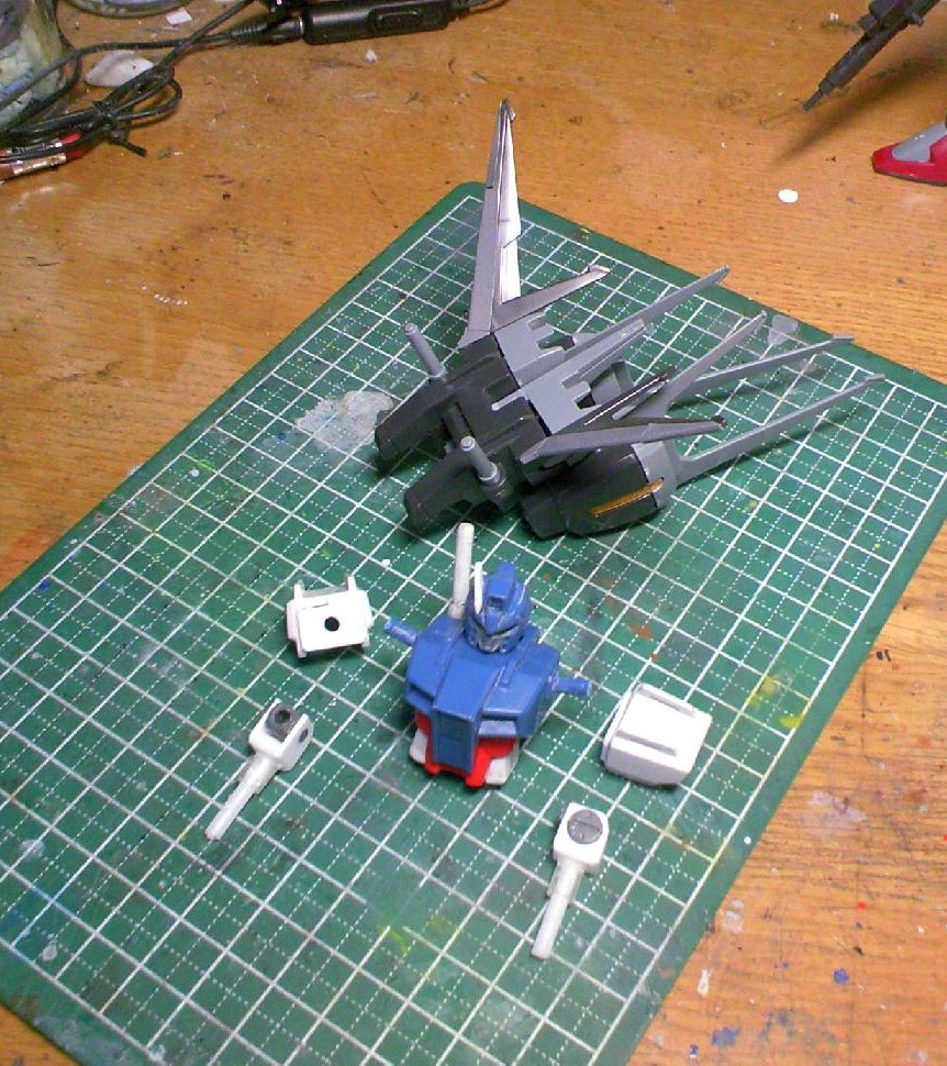 ちなみに以前の105ダガーで既にコンパチ用の胴体や肩が出来上がっているので、今回はこれを使います。一緒に写っているエールはスローターダガーに付属していたものです。