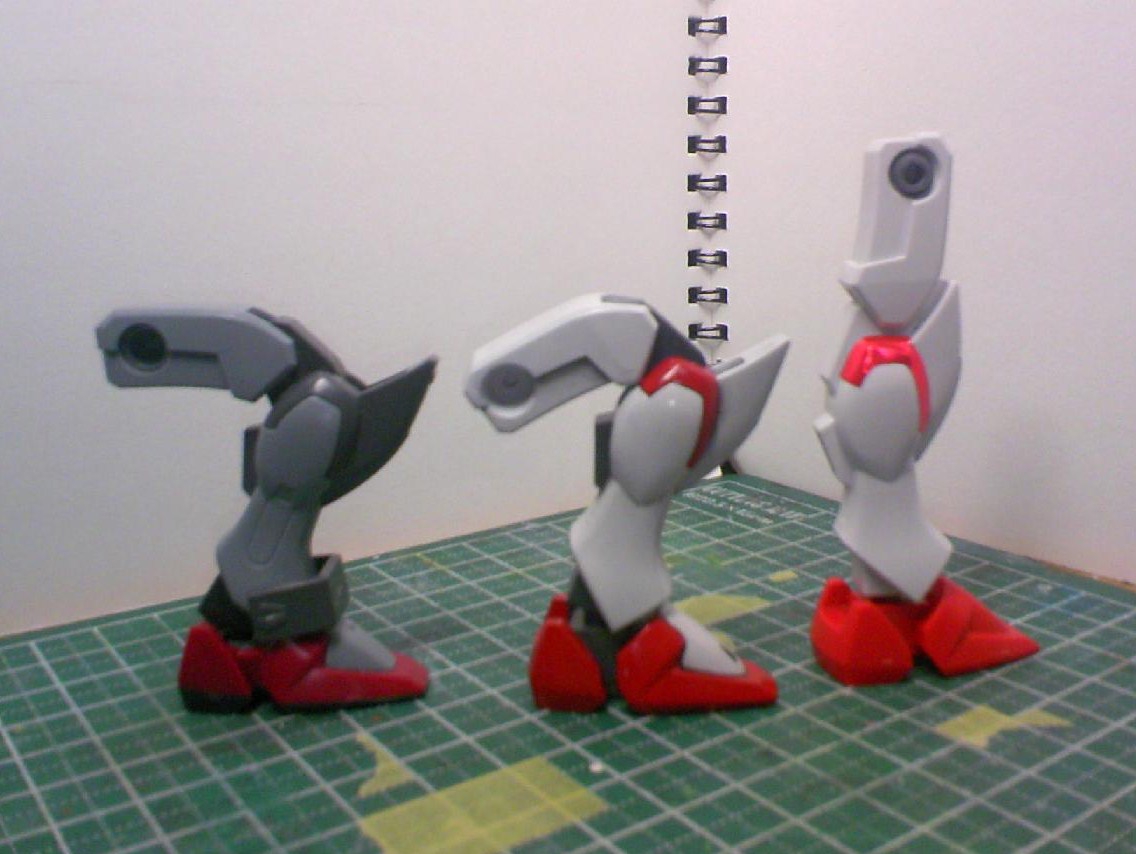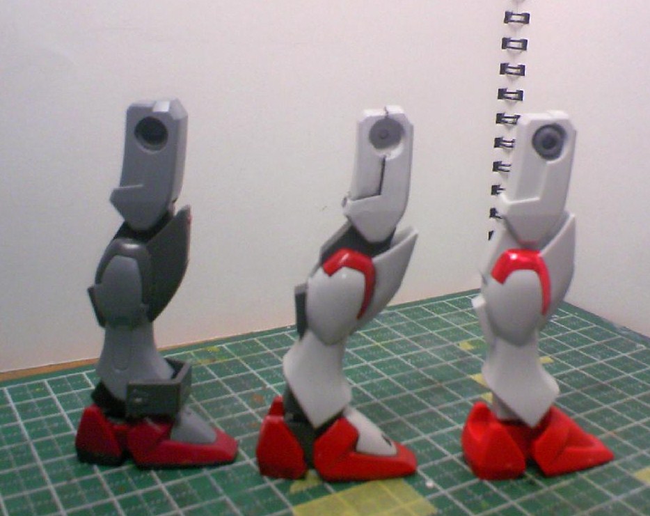 左からHGの105ダガー、今回のストライクダガー、改造前の状態となります。多少傾いていますが、ほぼHGと同じ仕様ですね。