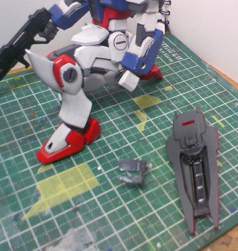コレクションキット、というだけで可動はどんなもんかお察しが着くでしょうが、それでもディテール面はHGとさして変わらないので、当初は105ダガーのパーツを組み込もうと思っていたら、案外使えそうなパーツが少ないのに気付き、急きょミキシングをやめて改造だけで済ますことになりました。