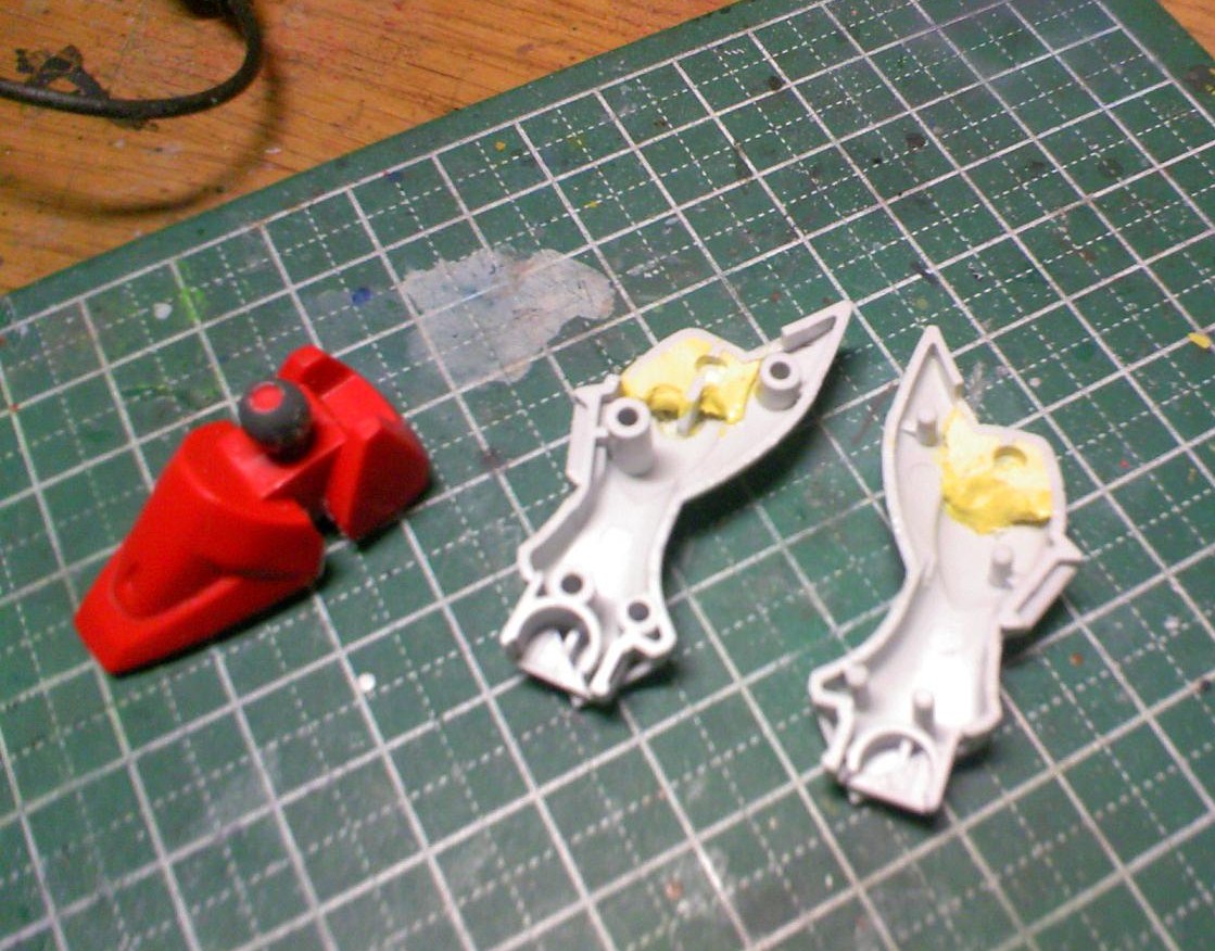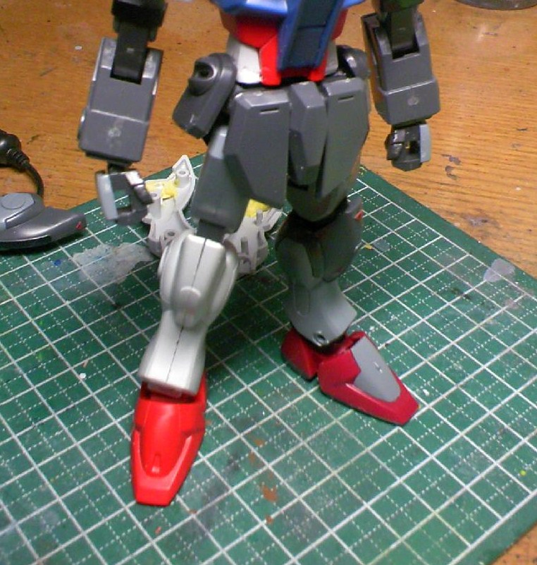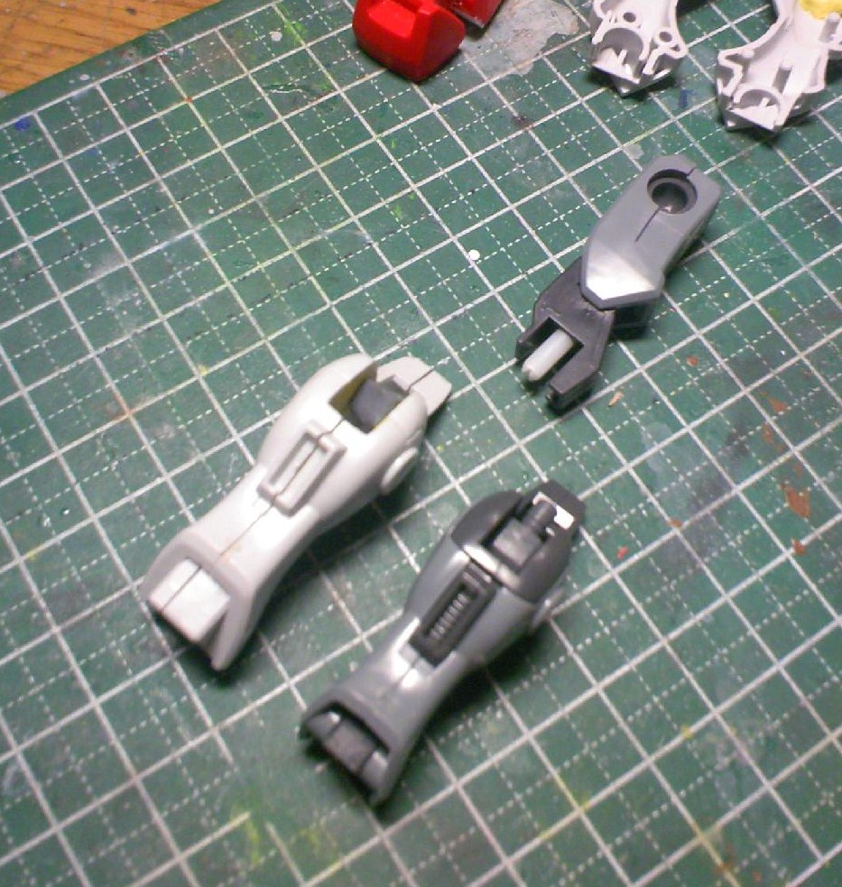 昨日盛っていた脚のポリパテを削り、ポリキャップ用の穴を空けました。