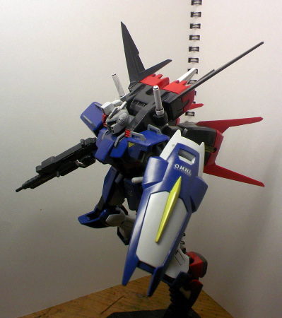 エールストライカーはHGストライクから。可動スラスターから生えるスタビライザが一枚折れていたので、それをプラ板で自作した以外は特に無改造です。