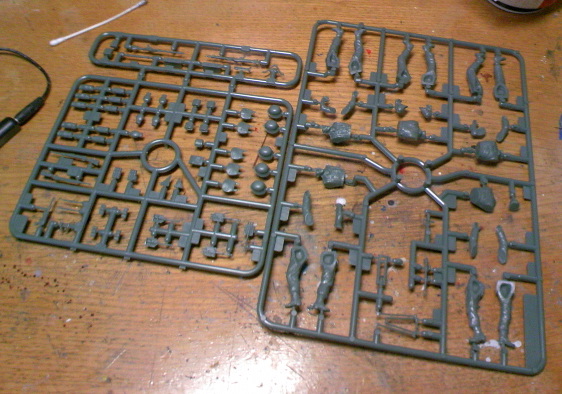 パーツは本体だけなら両手足、胴体、頭、ヘルメットだけ組めば大まかな形ができて、それから水筒やら雑のうやら銃を付ければ完成という簡素ぶり。まあこれが当たり前な訳なんですが。