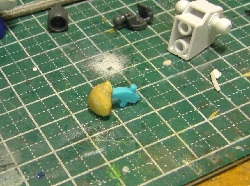 目はジャックエッジ用のコピーを作る都合で、エポパテにて型を取る事に。どうせこの程度の物だから、大まかに型を取って後は目をウェーブのパーツなんかで作り直したりするんでしょうが・・・