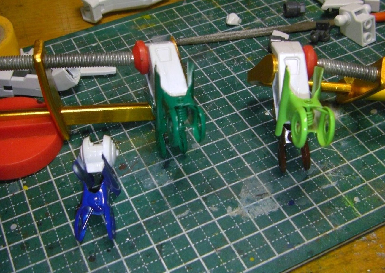頭はマスク・上記の目・頭頂部のパーツがそのままでも後ハメ可能なんですが、マスクのみ着脱の便を考えて頭部パーツの固定ピン(?)を短くしています。