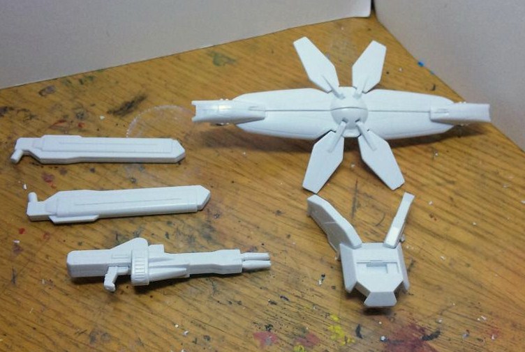 HG用に作るため、今回は最低限必要なディバイダー・バックパック・エネルギータンク・ビームマシンガンのみ製作。全部真っ白です。