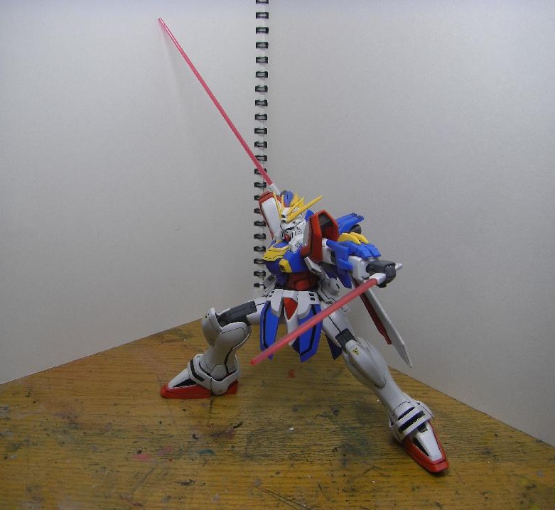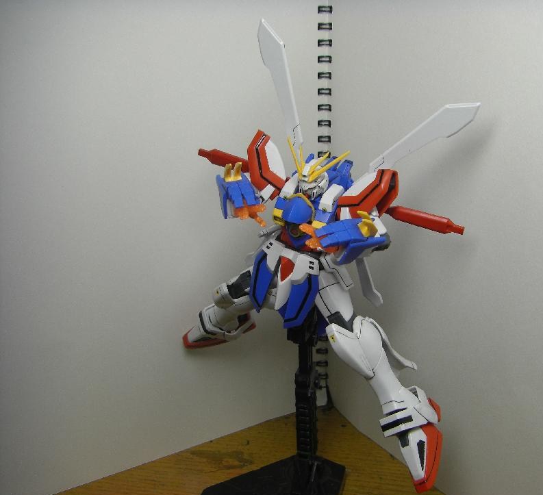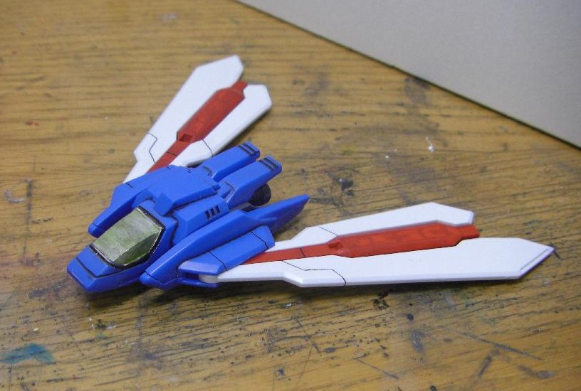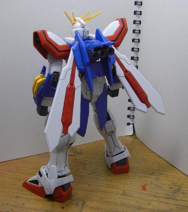 リアビュー。背部の赤ウィングは肉抜き穴をポリパテで埋めて塗装したのですが、組立ての際に前後を間違えて組んでしまいました。でもまあそんなに変化はな