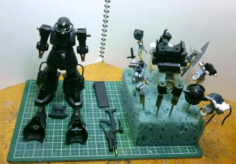 あ、ちなみに今回は予定通りの黒い3連星カラーで塗ることにしました。