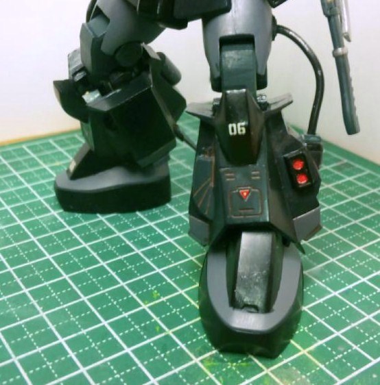 当初はザクをベースにするため、当初このパーツは膝部分までしか作ってなかった(ザクの脚関節が使えるため)のですが、旧ザクベースで作った方が手っ取り早いと感じ、急遽フレームを作り足した・・・という感じですね。