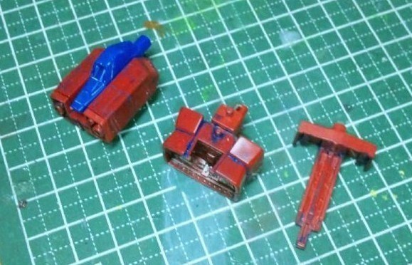 他にもキャタピラのアームの塗装も落したんですが、ABSをアセトン(=マニキュアの除光液)に着けるのはまずい事だというのに改めて気付きました。