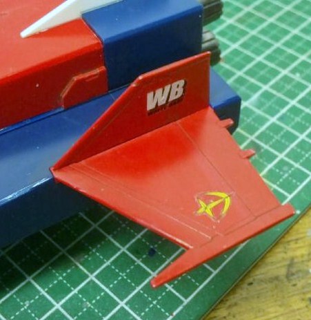 翼には、連邦のマークやスレッガーさんのマーク(小)と、ホワイトベースのロゴマークを貼りました。