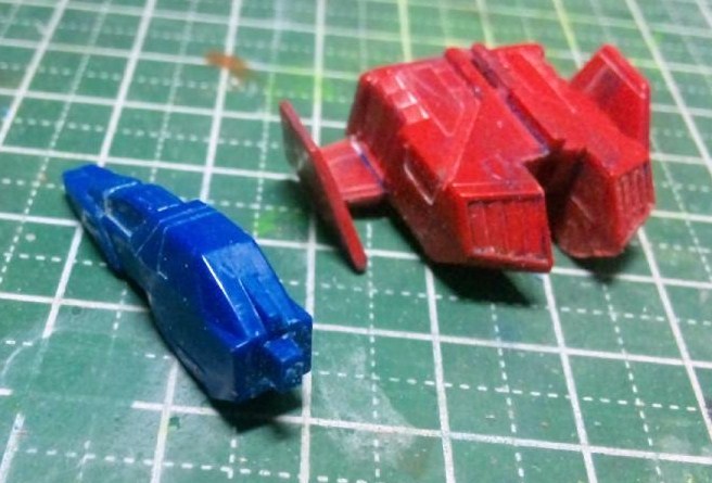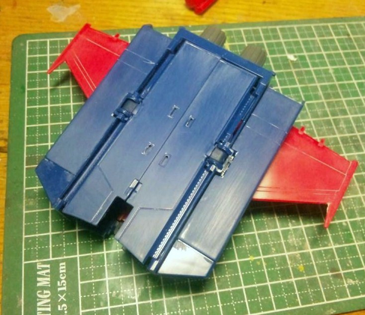 コアファイターは一旦塗装を落とし、胴体と機首を別々に合わせ目消ししました。