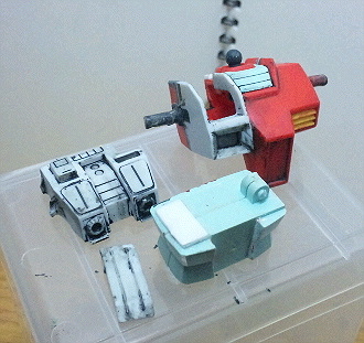 ジムキャノンの方は、胴体をバラして不備のあった所を修正。キャノン砲を後ハメできるようにしました。