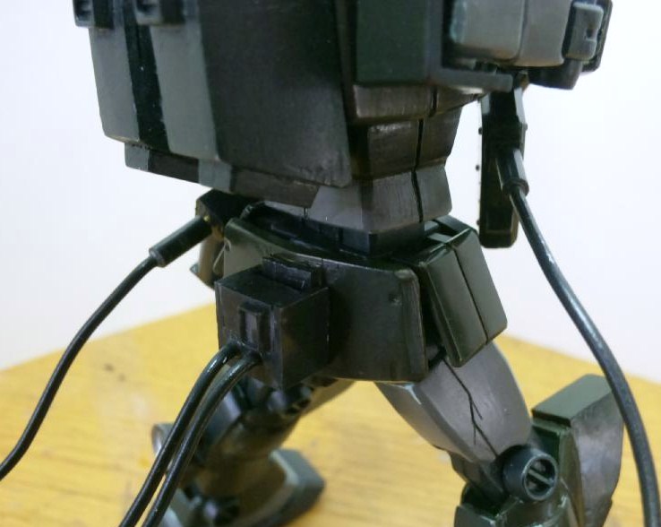 ちなみにライフルの銃床には穴を開けてあり、腰のハードポイントに付けた謎のユニットから伸びているコードを介して左腰の電源パックとつなぐ事によって単独でもこの大出力ビームライフルを撃てるように・・・というつもりです。