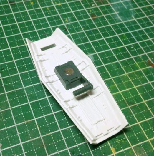 かつてGガン系キットで大活躍してくれたダ○ソーの10個入り100円のネオジム磁石(恐らく事務用品コーナにある)があったのを思い出して、早速取り付けてみる事に。
