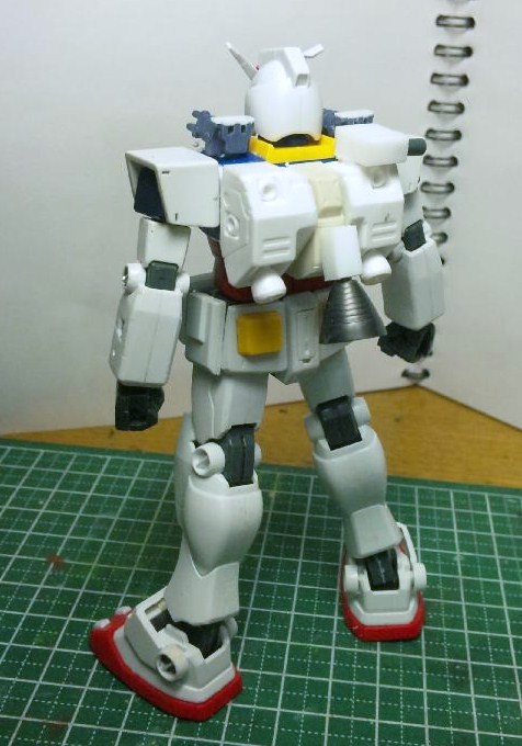 バックパックはこれまたHGUCアレックスの物を真っ二つにし、1/144イージーエイトの股間アーマーを挟みこんで製作。