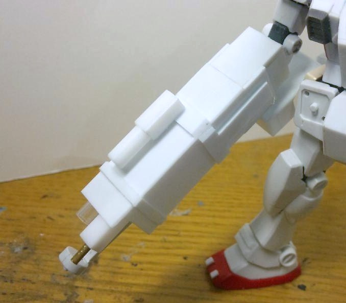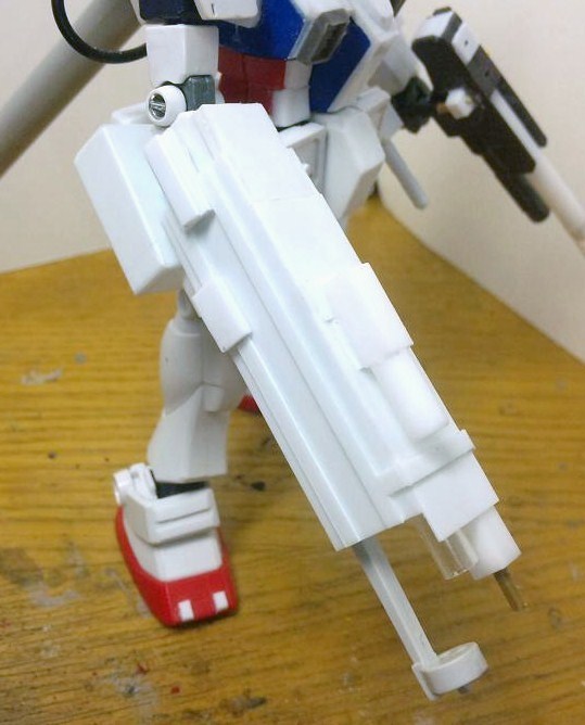 んで、まだまだ続くヘビーガンダムの方は、ヘビーランチャーにプラ板で色々とデコレートしてみました。上の出っ張りはセンサー及び照準器となります。