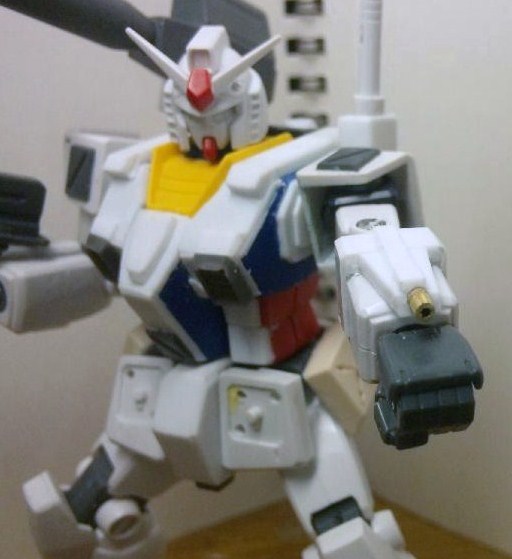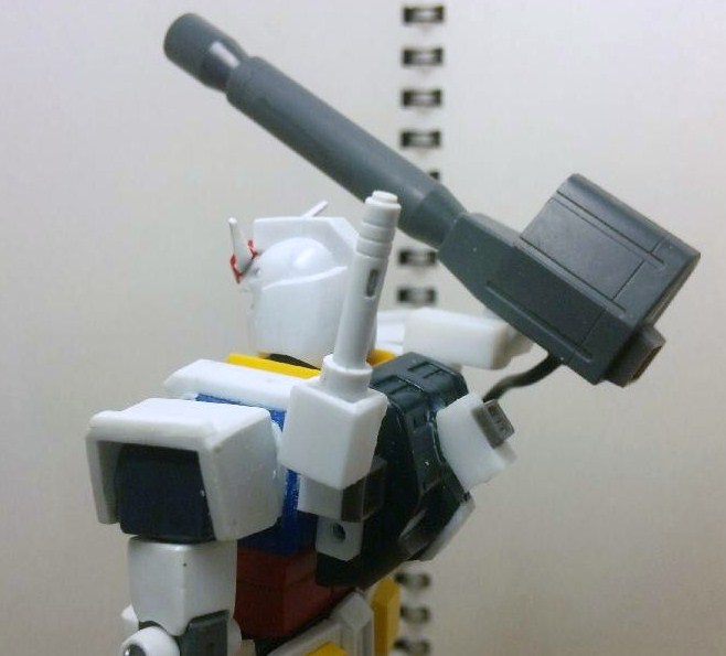 自作のグリップはHGUCガンダム及びジムにピッタリ合うように調整しており、銃持ち手を接着した状態でも楽に持てて尚且つしっかり保持できるようになっています。