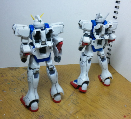 当初はVダッシュだけ組む予定でしたが、ヘキサを見ていると急にもう一つ作りたくなったので、ヘキサは月面生産仕様にしました。と言っても頭以外での変更点は足の甲を青く塗っただけという、何とも簡単なものなんですが(笑) 故に足パーツだけを交換すれば簡単に一般機にもできます。