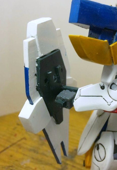 腕との接続は、ビームシールドのラッチに取りつけるようにしています。