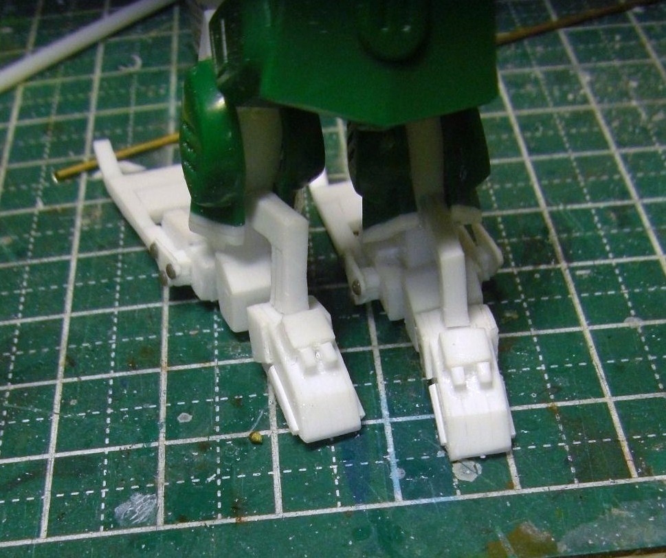脚部にはリベットを打ったり、ちょっとしたパーツを貼ってみたり。リベットはコトブキヤのパーツを使っていますが、トランプルリガー用の小さいものが見付からなかったので、こちらだけスピットファイアの時にやった手法でリベットを打ちました。