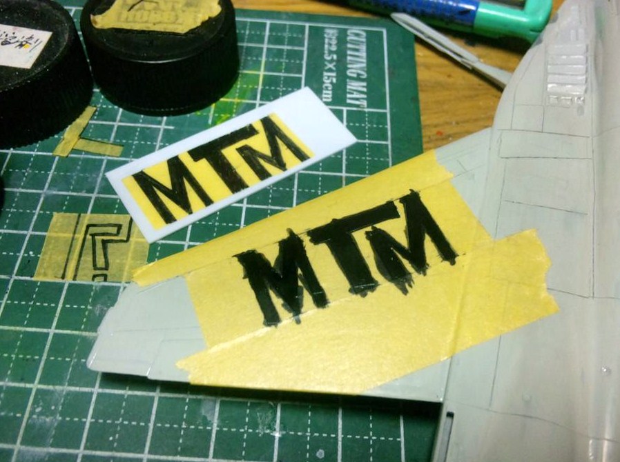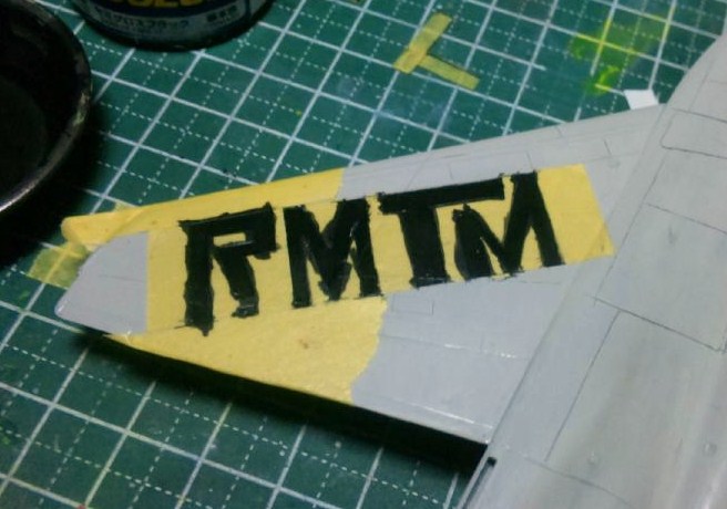 最初に下書きとしてマスキングテープに字を書き、その上から更にテープを貼ってから字をなぞって簡易テンプレートとゆーかマスキングシートを作りました(1枚目の「R」が塗装前になります)