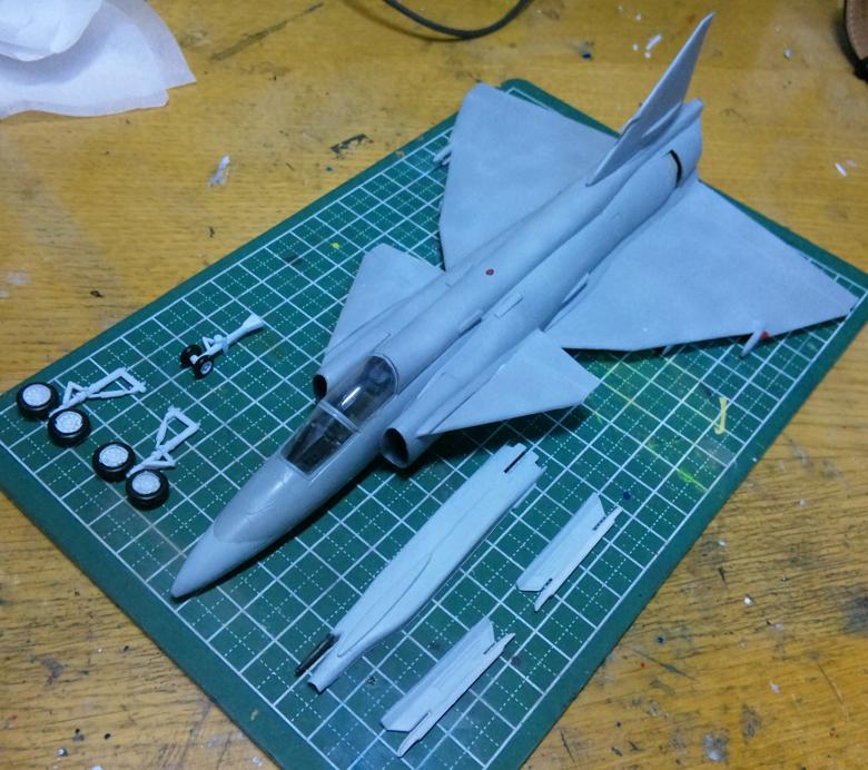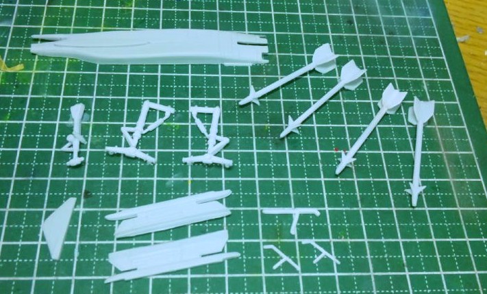 ミサイルやJA-37用のガンポッド、ギアなども塗装。後は全て接着するだけです。