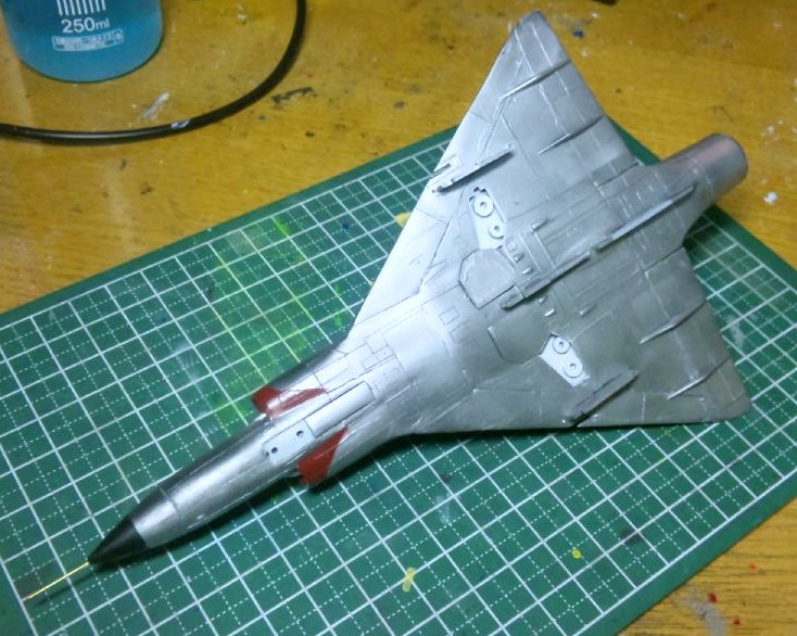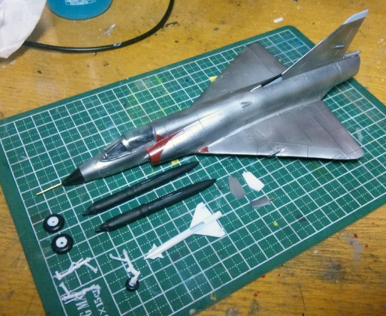 ランディングギアやロケット弾ポッド、ミサイル(?)も塗装しちゃったので、あとはスミ入れしてデカールを貼ればもうすぐ完成ですが、思ったよりもモールドが目立つのでスミ入れせんでもよさそうな・・・いや、しなきゃダメかなぁ(笑)