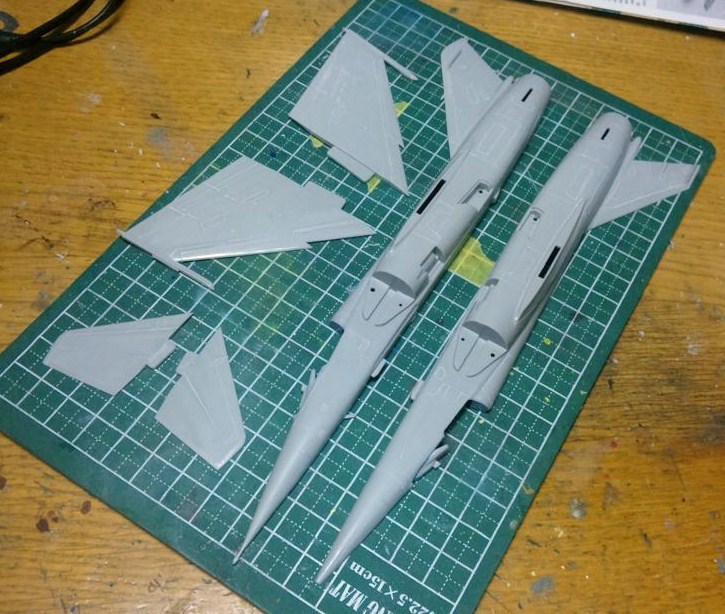 まずは最も面倒くさいと思う胴体や翼などのスジ彫り化から。