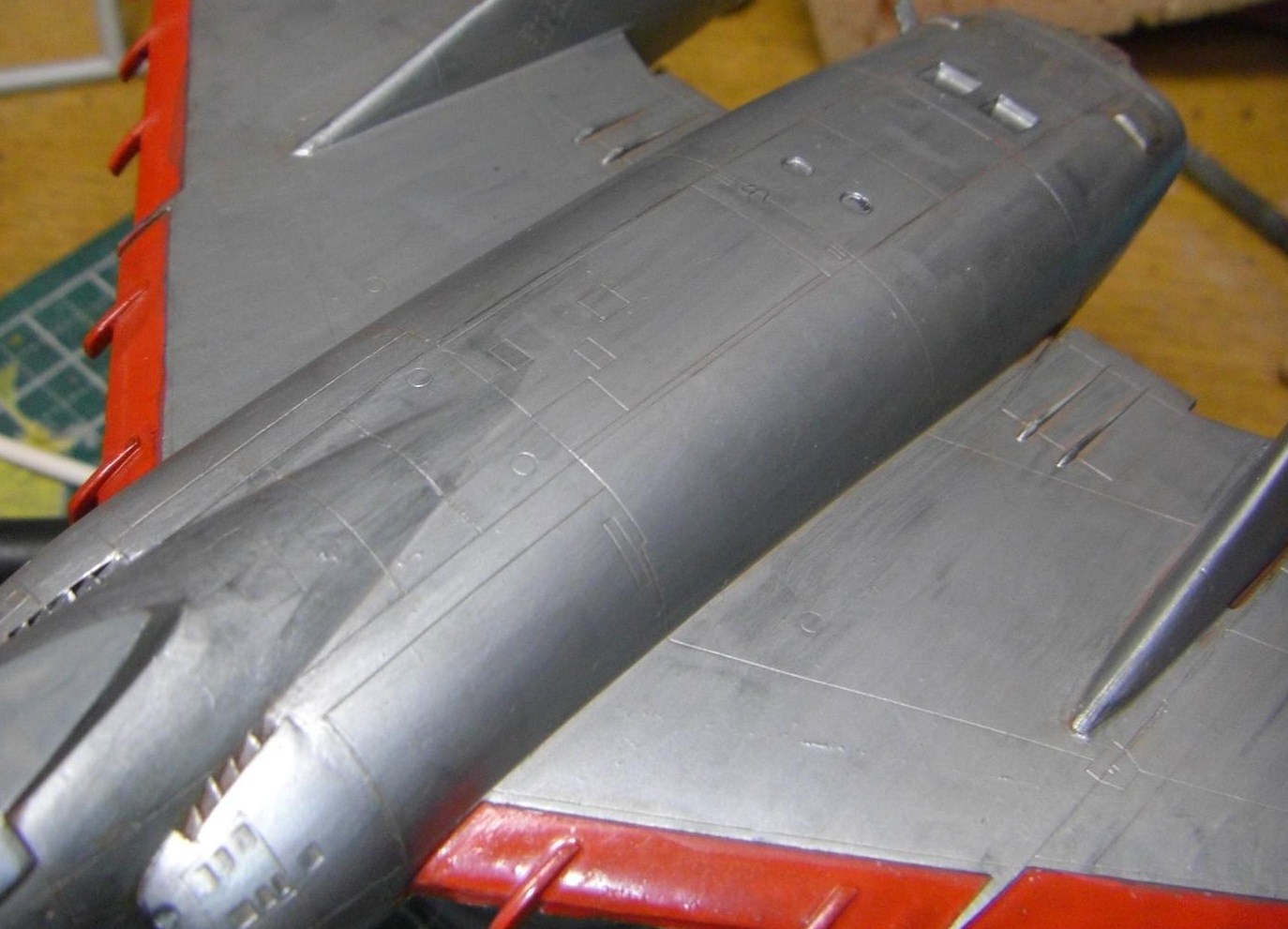 垂直尾翼の先端はシャインレッドで塗装しました。