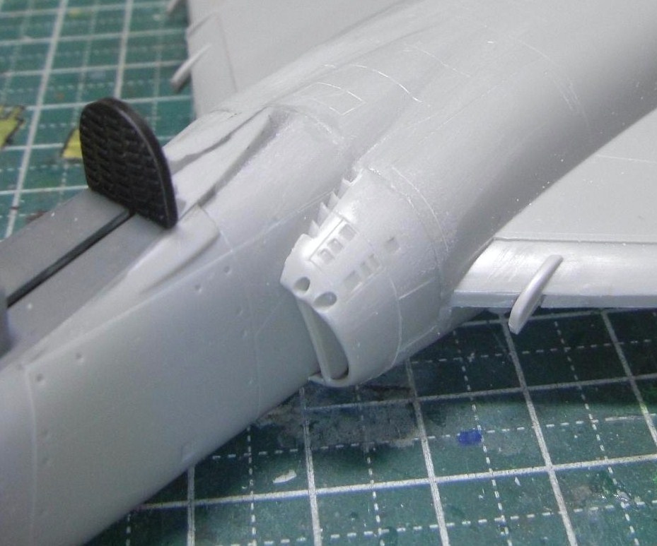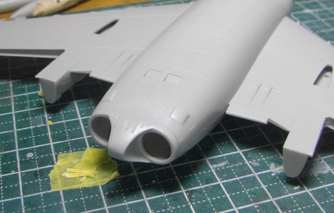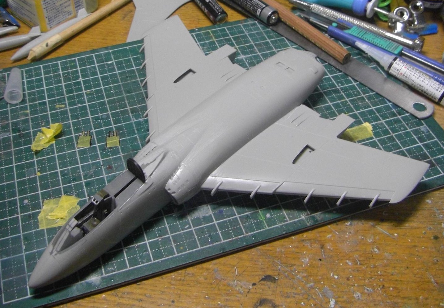 まず胴体と機首のつなぎ目を処理した後、インテークを接着しました。つなぎ目に少しできた隙間は瞬着でカバーだ!